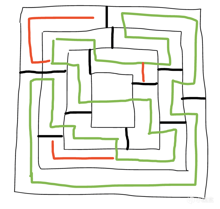 沿着绿色线条就能完成闭环,但是也有一些红色线路可以探索,这就是在开工之前做的动线设计。
