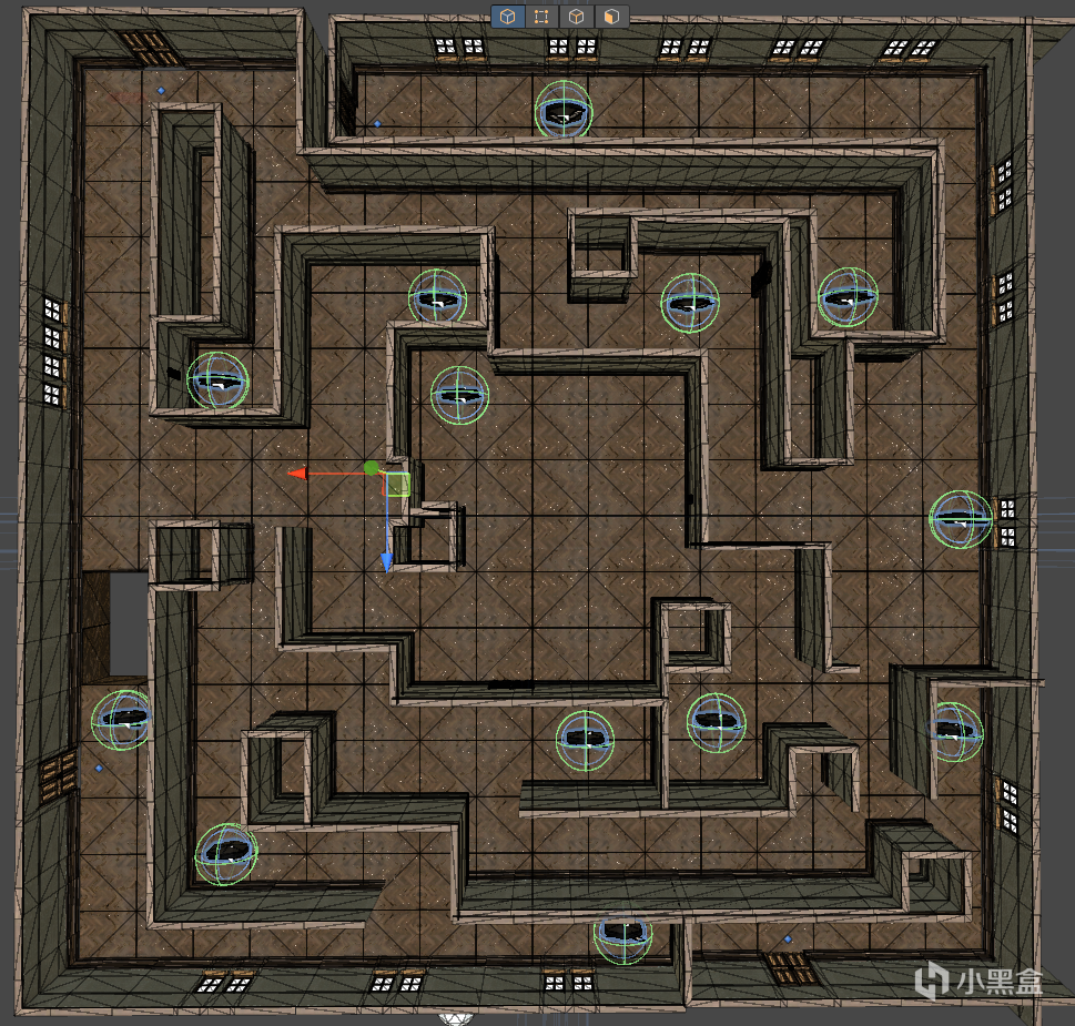 而我们的游戏需要玩家多探索,去各种分岔路口搜集通关Token,如果只有一条路难度会大大降低,反而损害了玩家的体验;同时由于场景中有怪物,我们需要给玩家一些空间进行躲避和策略操作。因此,最终我们设计了能够环绕整个地图但是包含了一些分叉与死路的设计。